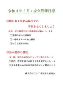当社、今月2月の安全管理目標は『構内および納品場所での事故をなくそう』と