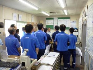 今回も早朝より今月の安全管理目標の発表、事故防止、労災防止の注意喚起等を
