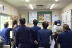今回も早朝より今月の安全管理目標の発表、事故防止、労災防止の注意喚起等を短い時間ではありますが