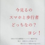 今月の交通安全標語は『今見るの スマホと歩行者 どっちなの?』です。