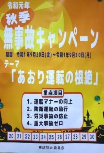 当社、ただ今『令和元年 秋季無事故キャンペーン』を開催中です。