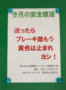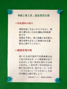 令和2年5月の安全管理目標は「防衛運転の励行」「健康管理対策」です。