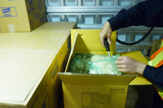 冷凍・冷蔵輸送においてもっとも気を払わなければならないのが、「温度管理」です。当社では輸送専用の温度調節機器を用いて細心の注意を払い適切な温度調整を行っております。それだけではなく、機器の扱いによる人為的なミスが発生しないように、目視での確認も含め様々なチェックを行い、お客様の大切な冷凍・冷蔵物をお預かり、配送を行っております。